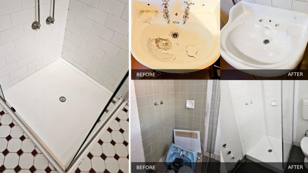 Bathroom surfaces naturally wear over time due to water, heat, steam, and cleaning. Resurfacing restores these surfaces with a fresh, durable finish — without the need for a full renovation.